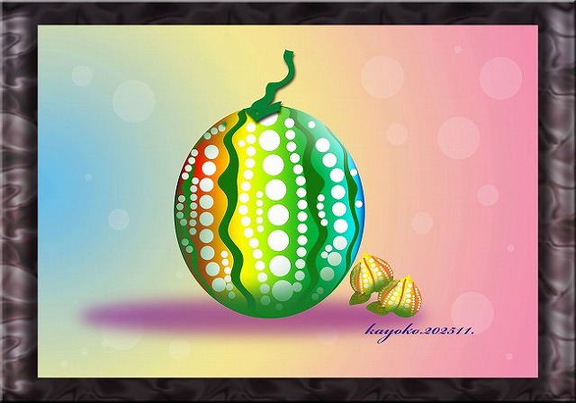 草間彌生氏のドット画家の模様をヒントにドットで西瓜の描き方をを教えて頂きました