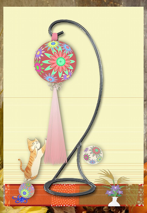 飾りひも(ふさ)作成にも工夫されて可愛い手毬の出来上がりです。